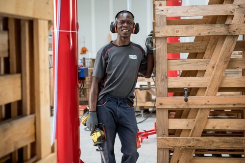 Derici a évolué en interne : de son poste d’opérateur, il est devenu conducteur de ligne en CDI à l’atelier Palettes.