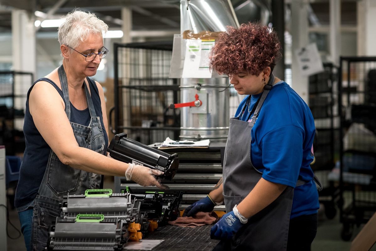 Reconditionnement de matériel informatique et de téléphones, revalorisation des cartouches d’impression, aménagement et entretien des espaces verts, fabrication de palettes sur mesure, revente de livres d'occasion... Chaque activité a été pensée pour avoir un impact environnemental, tout en créant de la valeur économique. Cette valeur nous permet ensuite de créer des emplois locaux et d’accompagner des personnes en parcours d’insertion, pour un impact social concret.